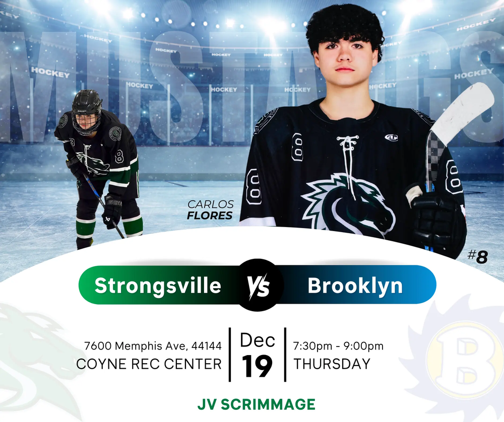 Get your jerseys ready, folks! It's almost time for some high-octane JV hockey action as our Strongsville Mustangs 🐴 take on the Brooklyn Hurricanes 🌀 in a high school scrimmage you won't want to miss!